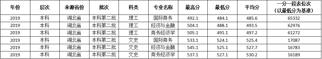 湖北省2019年本科第一批录取控制分数线为文史类542分,理工类505分。