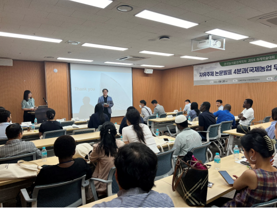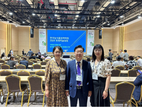 2024年8月19日,受韩国全北国立大学邀请,王文娟副教授、万涛副教授一行参加全北大学举办的“韩国农食品政策夏季学术大会”,并在会上作主题报告,会议期间与全北国立大学教授及各国与会代表展开学术交流与探讨。