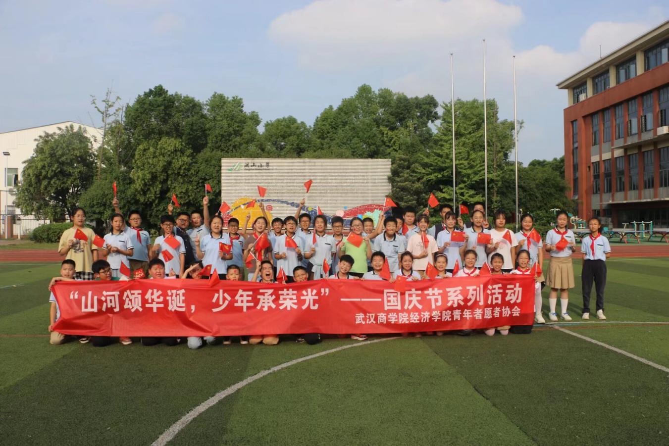 秋风送爽,丹桂飘香,为弘扬爱国主义精神,庆祝祖国华诞,传递青春志愿力量,2025年9月28日,qy球友会团学和青年志愿者协会组织了20名大学生志愿者在洪山小学开展了“山河颂华诞,少年承荣光”国庆志愿活动。
