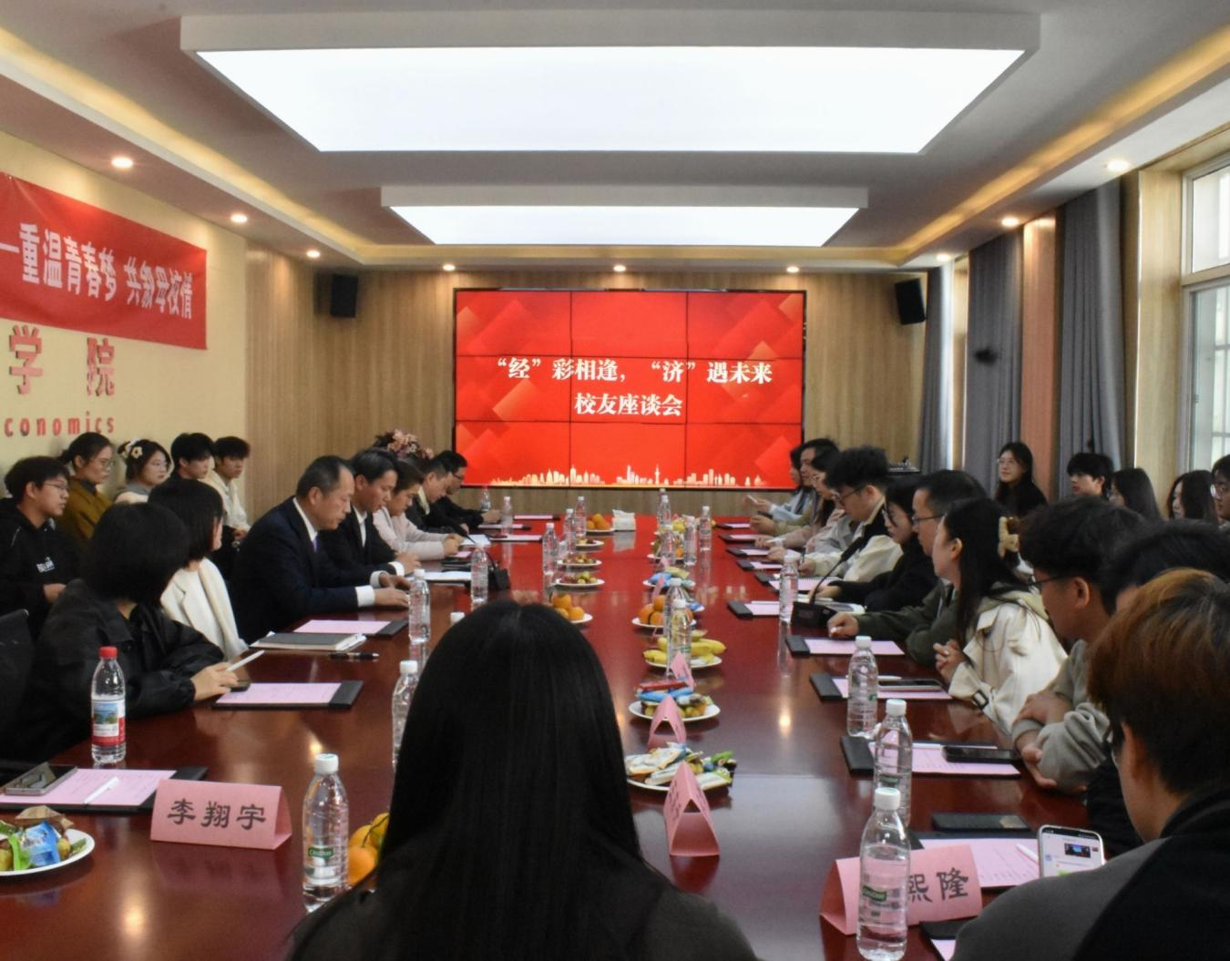 2025年11月22日,qy球友会,qy球友会“‘经’彩重逢,‘济’遇未来”校友座谈会在温馨热烈的氛围中隆重举行。来自五湖四海的往届校友满载对母校的深情与牵挂,重返熟悉的校园,与学院领导、老师们欢聚一堂。现场欢声笑语不断,大家在亲切的交谈中重温青春岁月,共叙师生情、同窗谊,拉开了这场跨越时光的暖心重逢序幕。