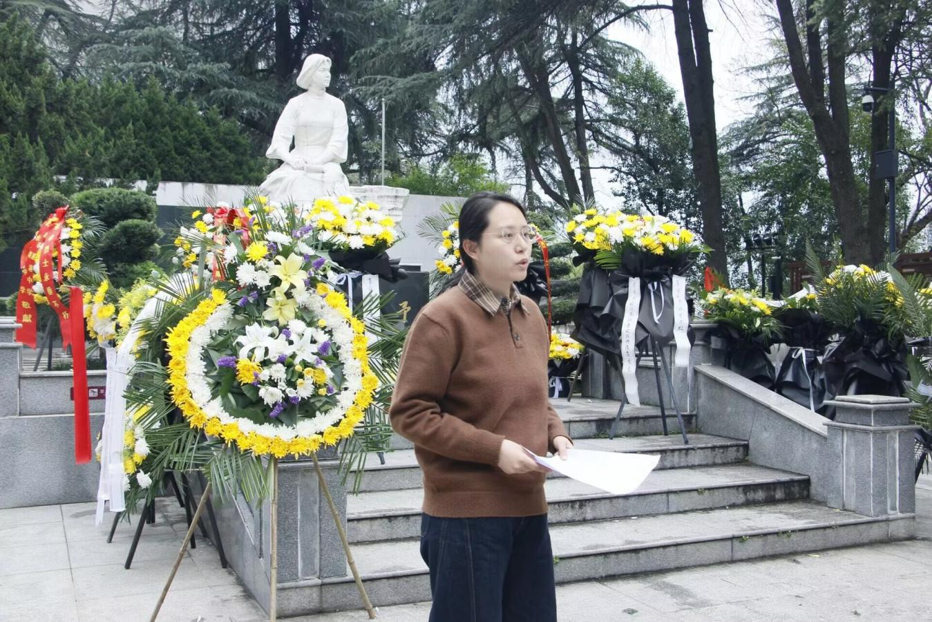 活动现场,全体师生在向警予烈士纪念碑前肃立默哀,学生代表敬献白菊,表达对先烈的崇敬与追思。史孔怡老师以纪念碑为“讲台”,为同学们带来一堂生动的现场思政课:她结合向警予烈士为民族独立、妇女解放事业献身的事迹,深入解读革命先烈“坚守信仰、舍生取义”的崇高品格,并勉励大家将爱国情、强国志转化为报国行,在强国征程中挺膺担当。